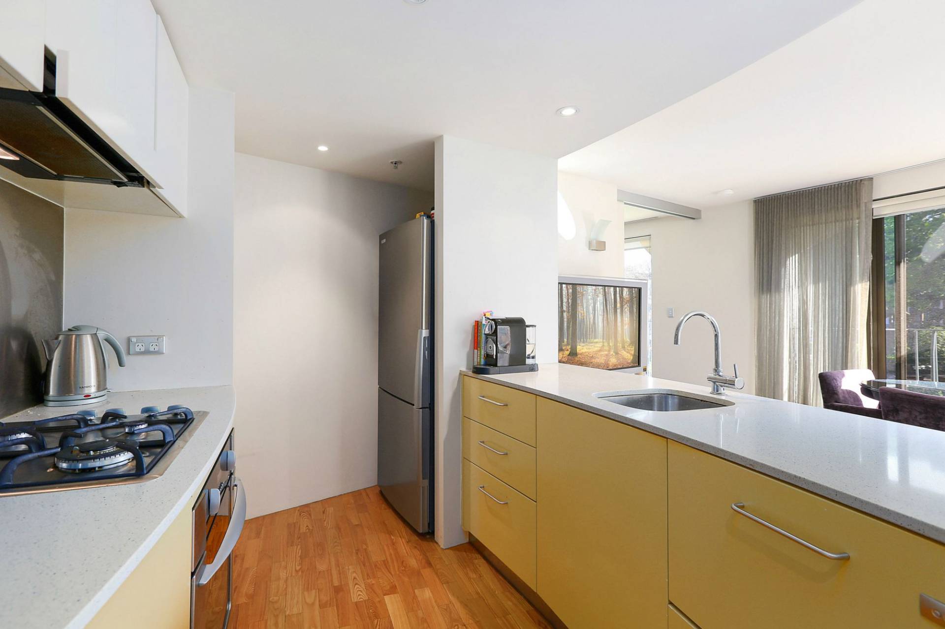 * Sleek, stainless steel kitchen with ample storage